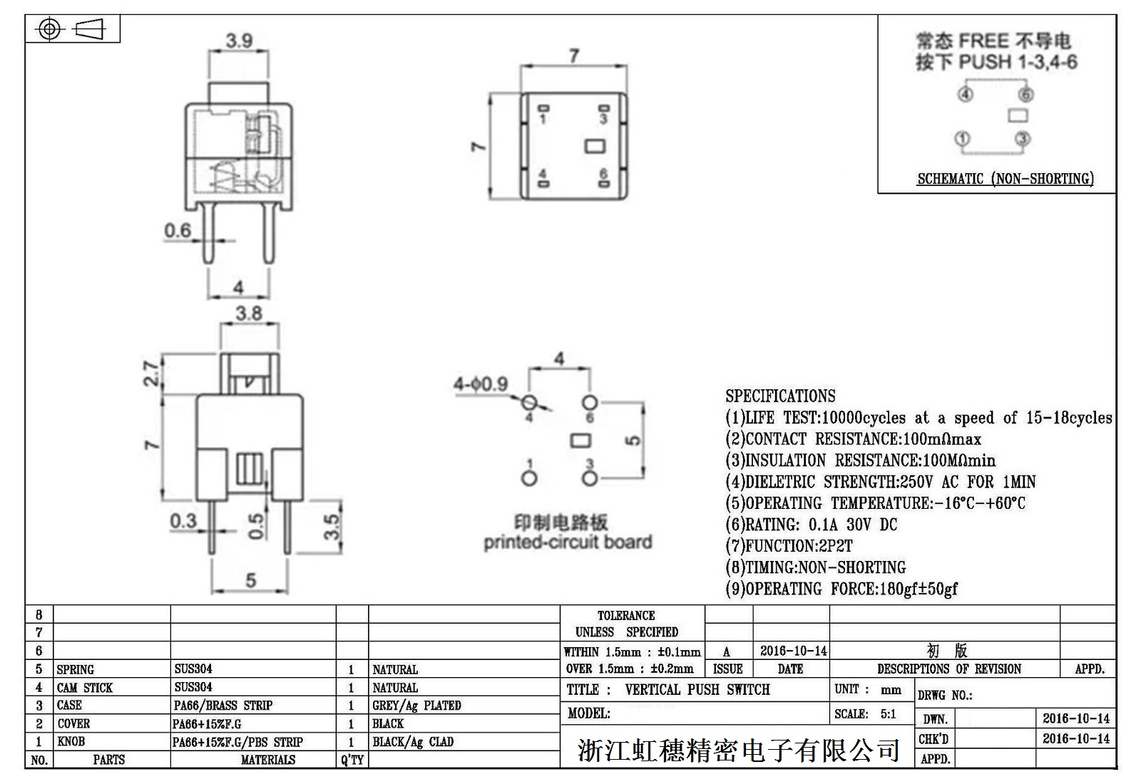 自鎖開關技術參數: