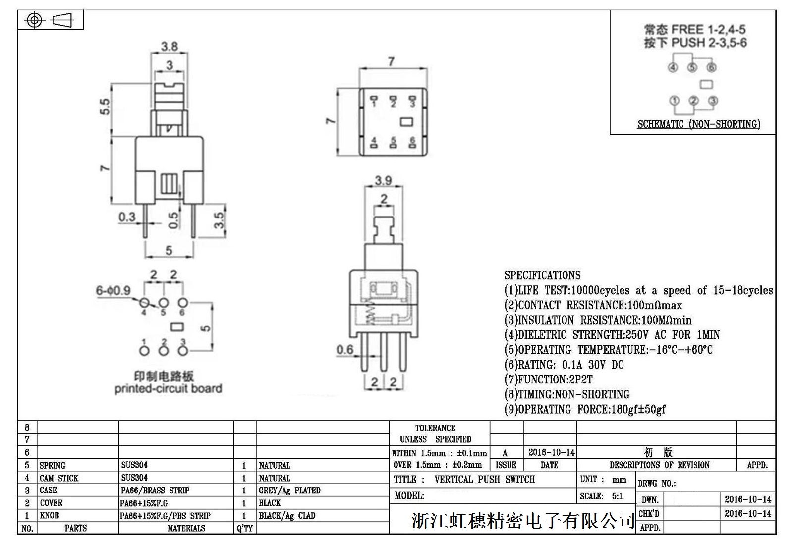 自鎖開(kāi)關(guān)技術(shù)參數(shù):