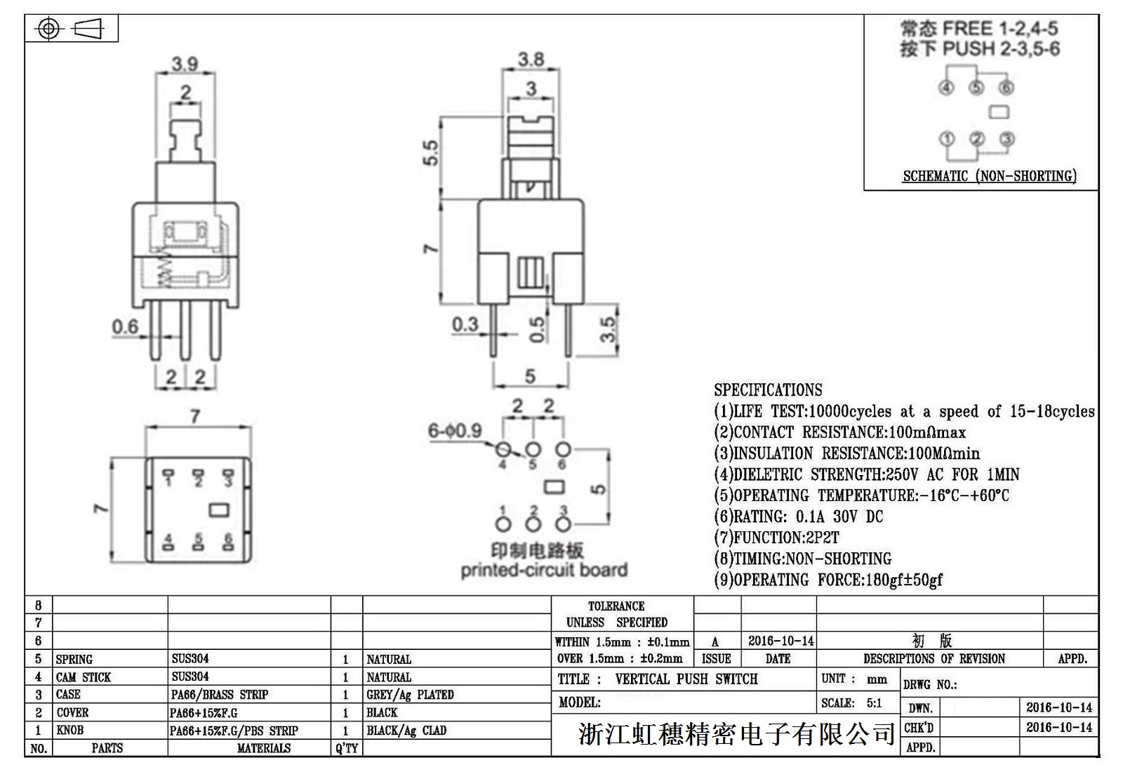 自鎖開關(guān)技術(shù)參數(shù):