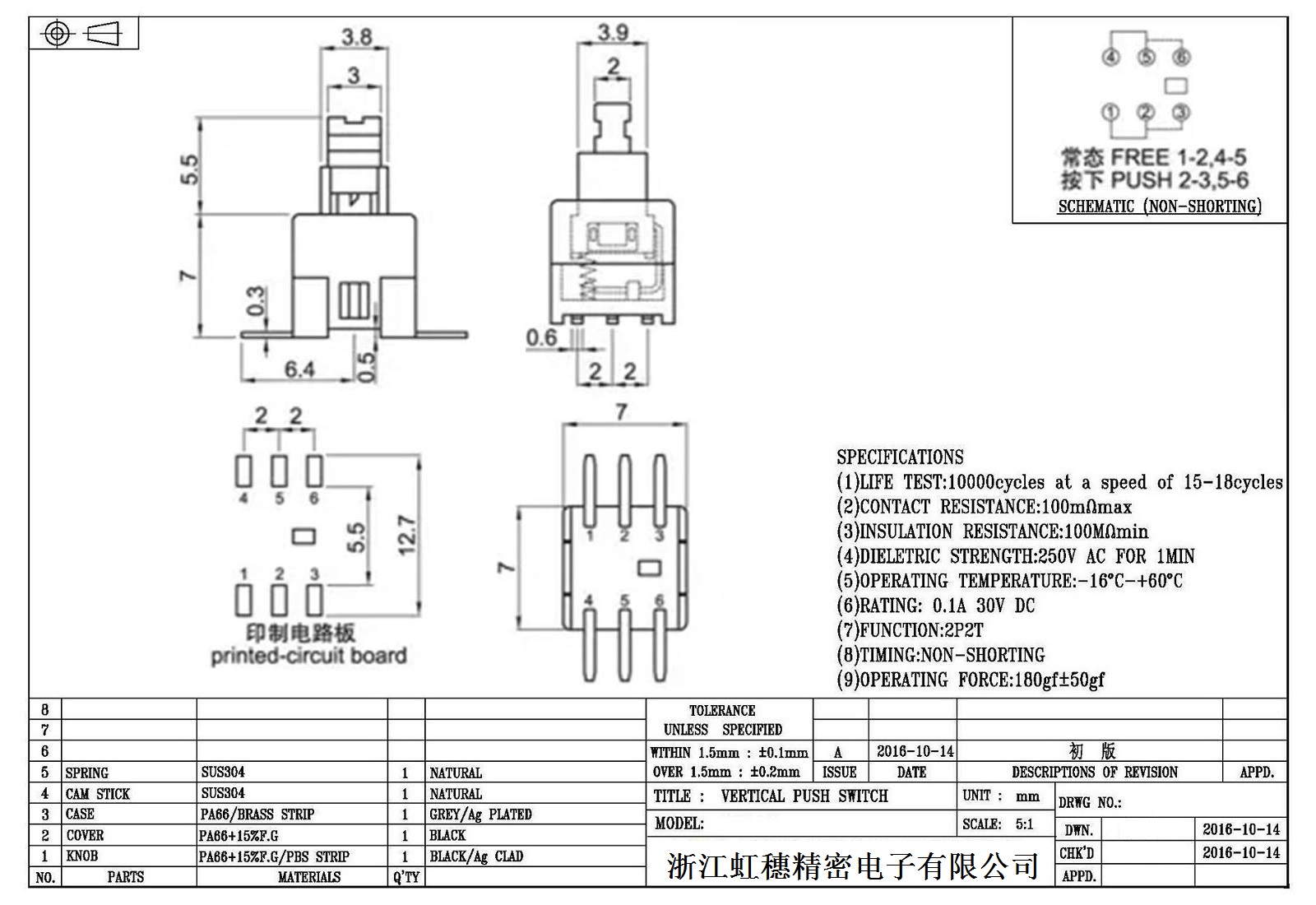 自鎖開關技術參數: