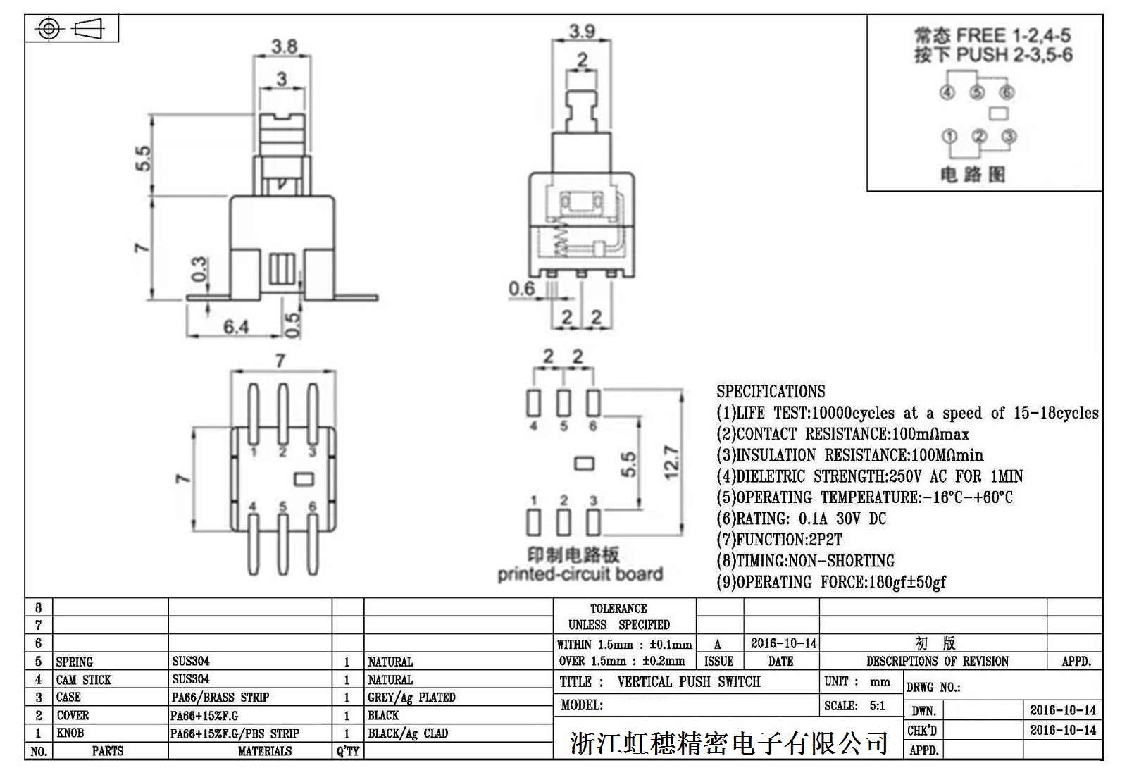 自鎖開關技術參數: