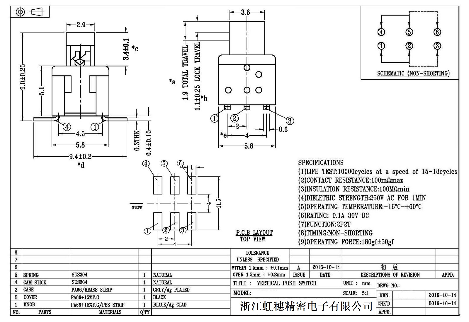 自鎖開關技術參數: