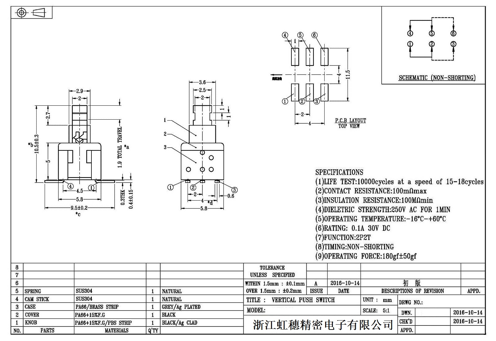 自鎖開關技術參數: