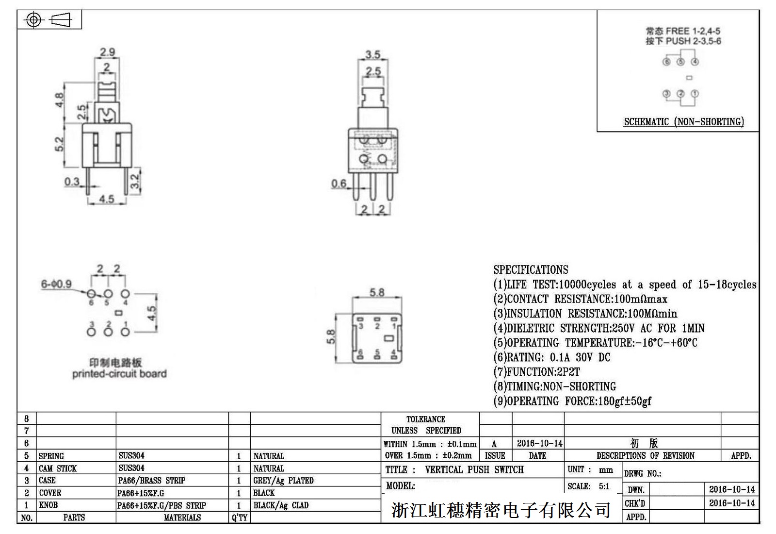 3. 絕緣阻抗: DC 250V ≥100mΩ