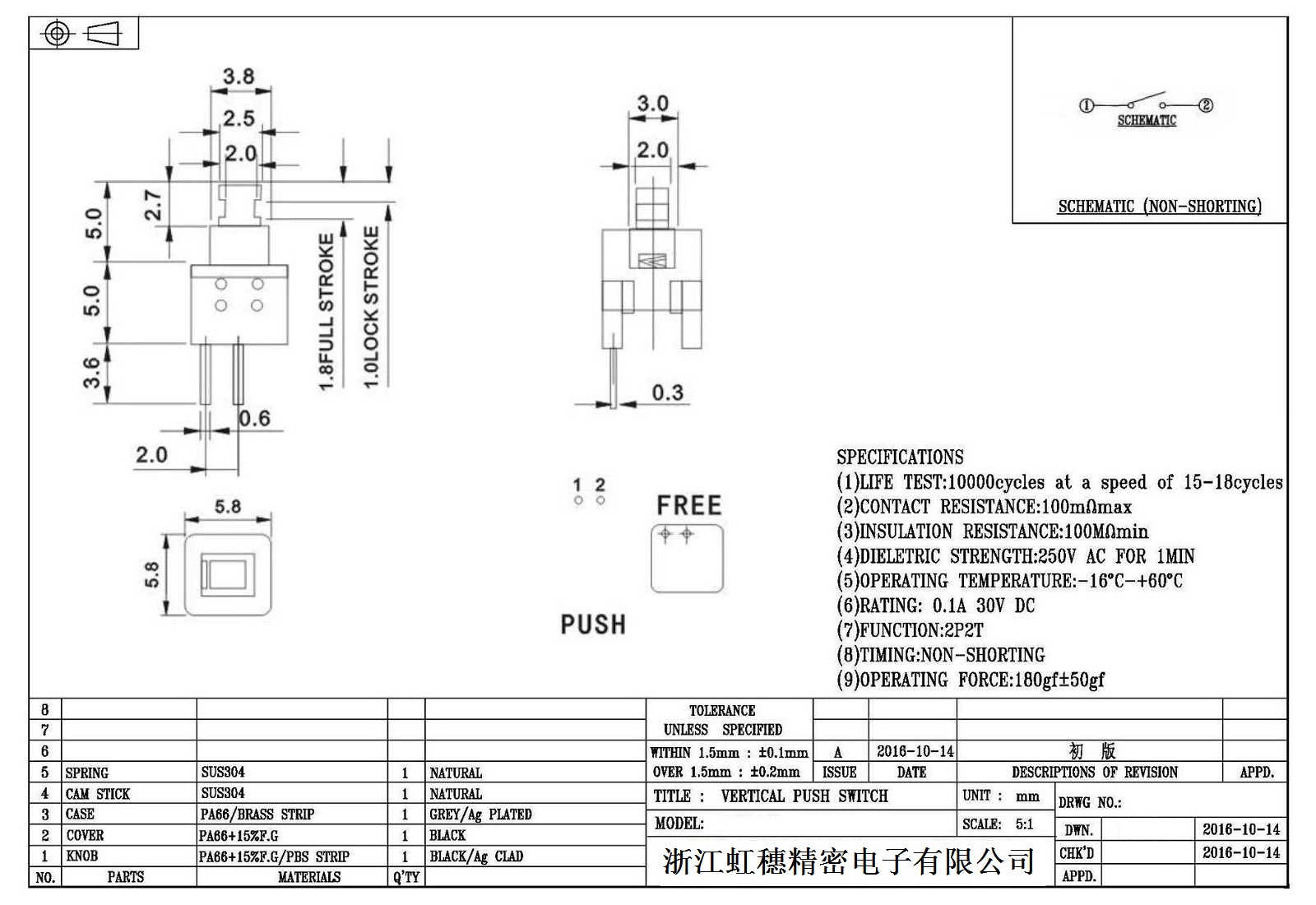 自鎖開(kāi)關(guān)技術(shù)參數(shù):