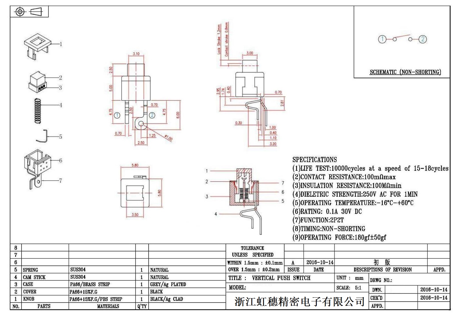 3. 絕緣阻抗: DC 250V ≥100mΩ