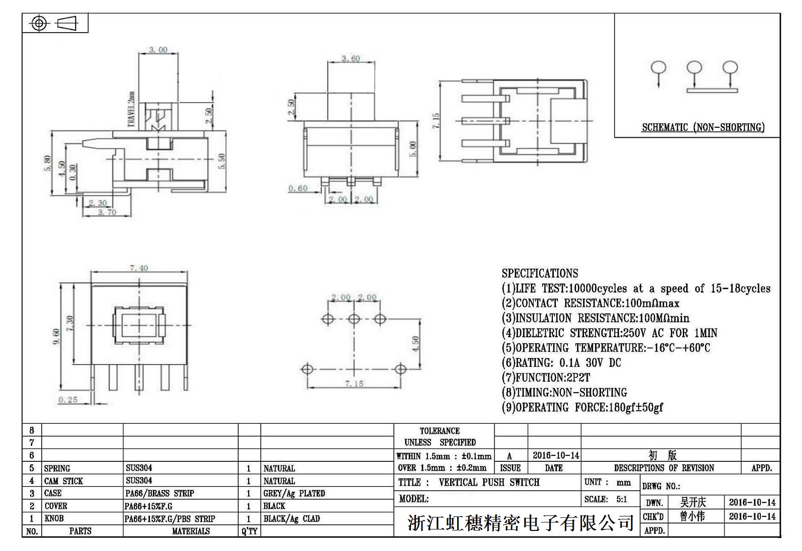 自鎖開關技術參數: