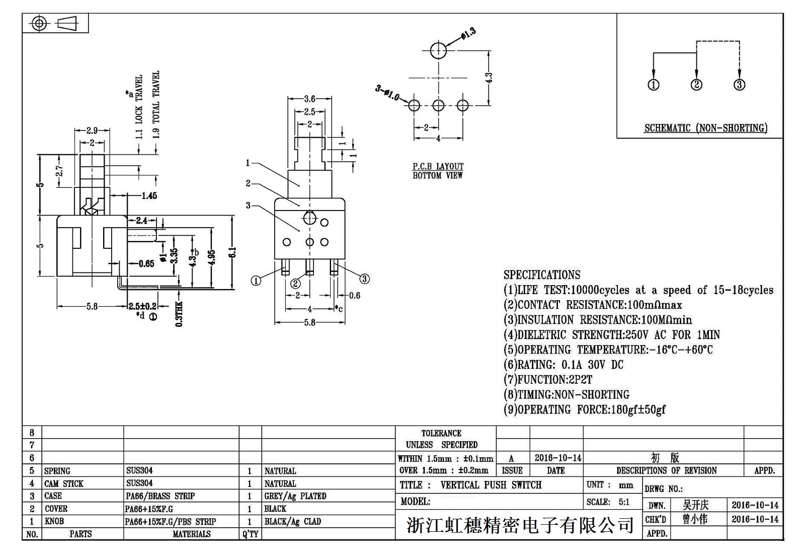 自鎖開關技術參數: