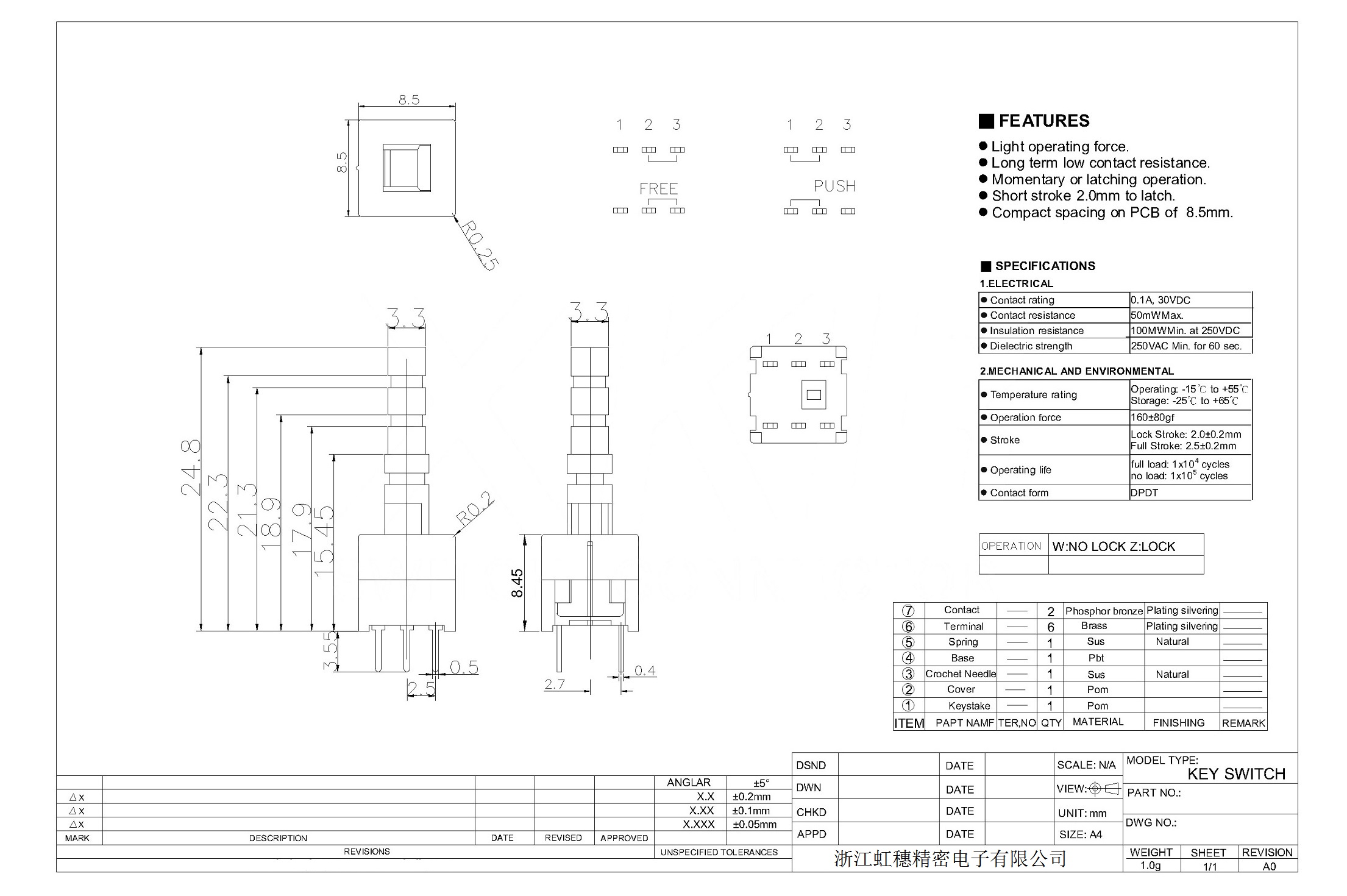 8. Operating force: 240gf ±80gf