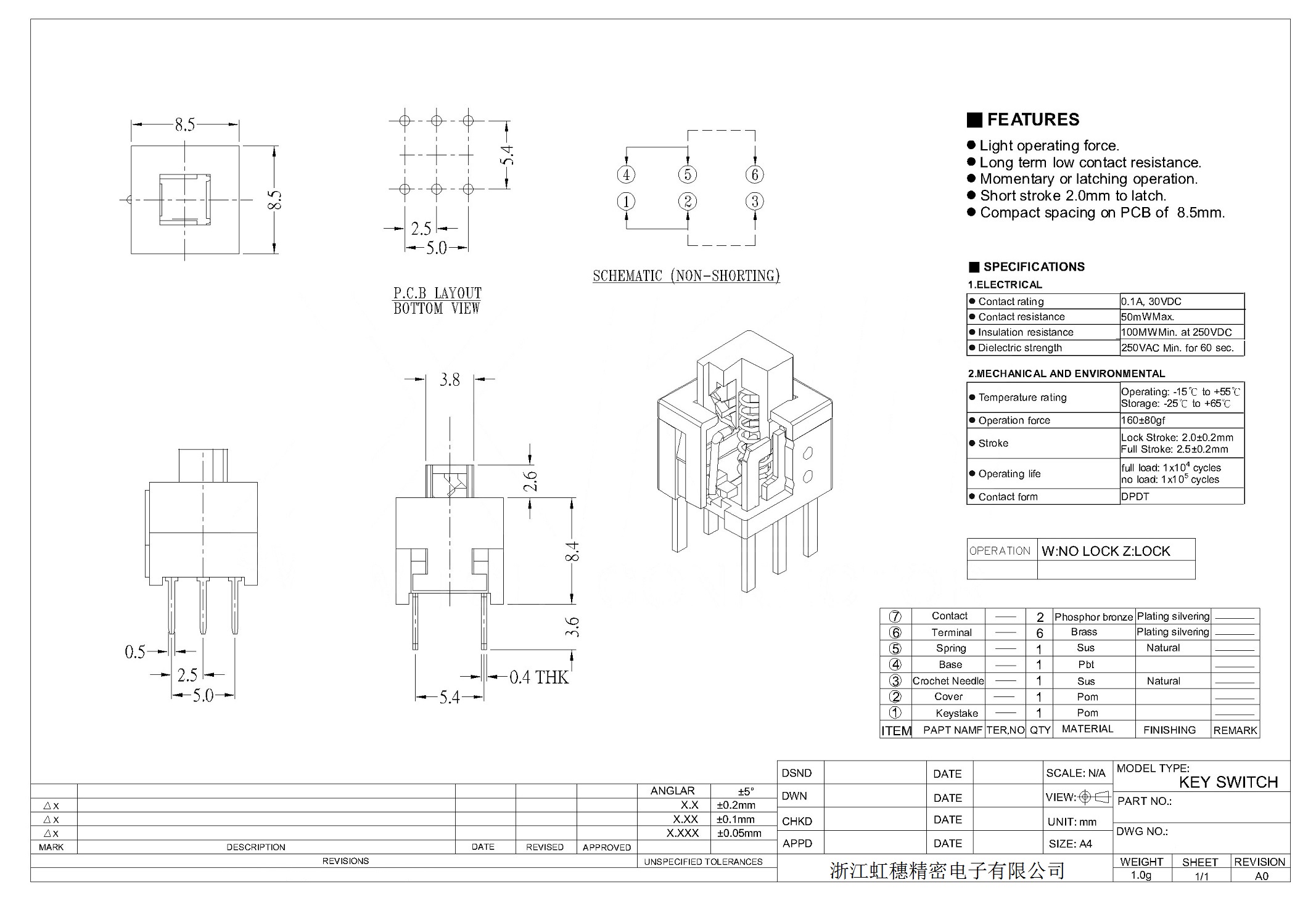 3. 絕緣阻抗: DC 250V ≥100mΩ