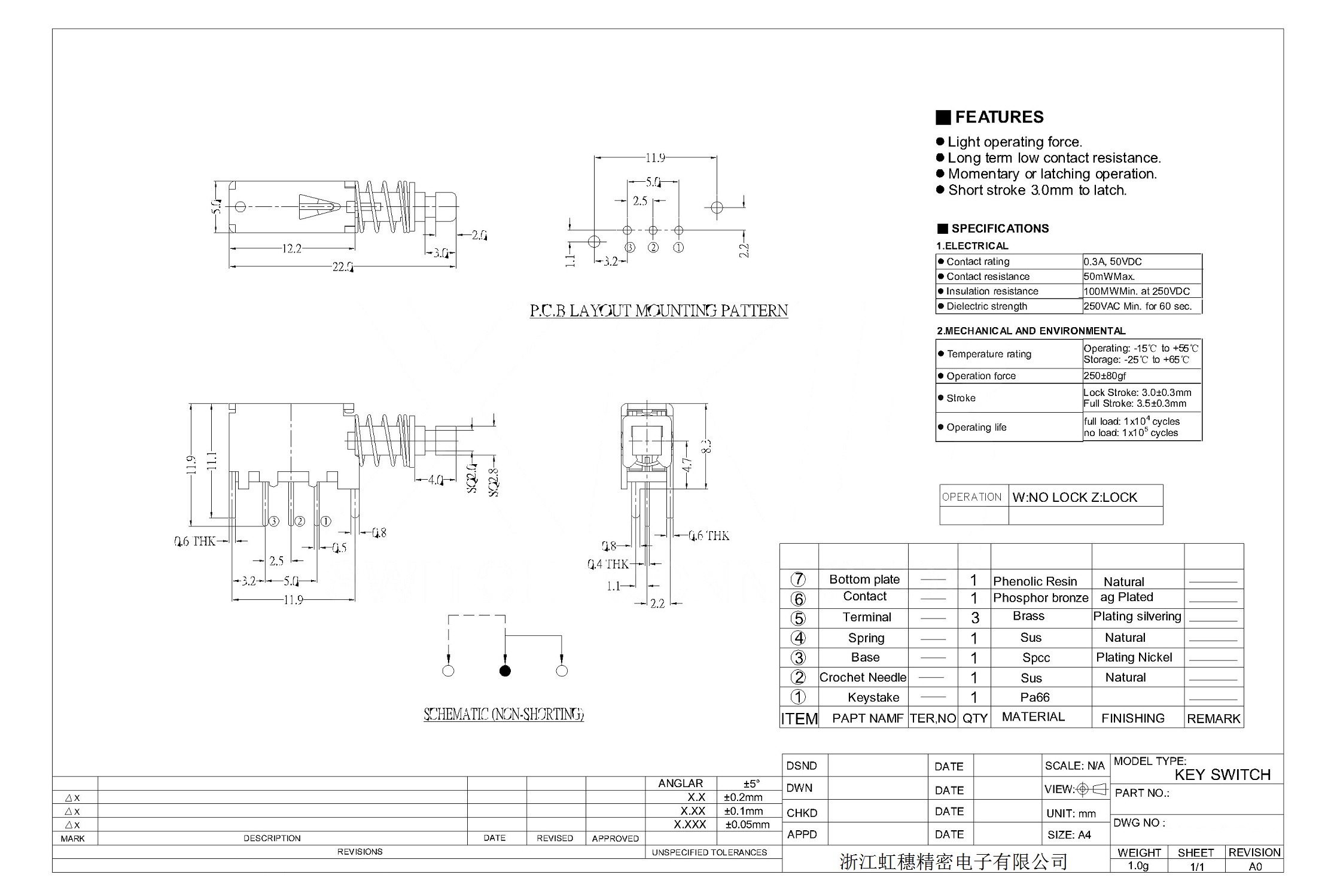 3. 絕緣阻抗: DC 250V ≥100mΩ
