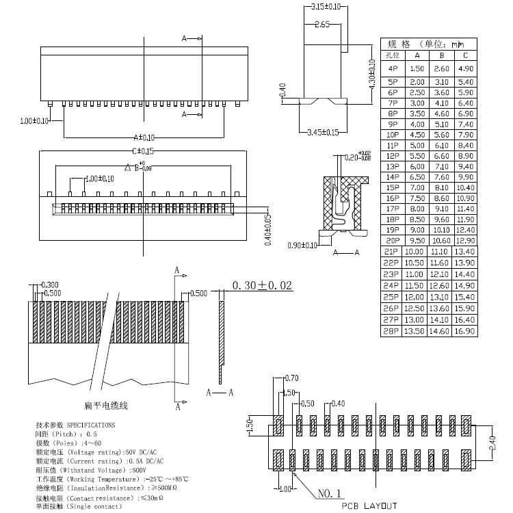 1.額定電壓、電流:50V DC/AC 2.接觸電阻:≤30mΩ