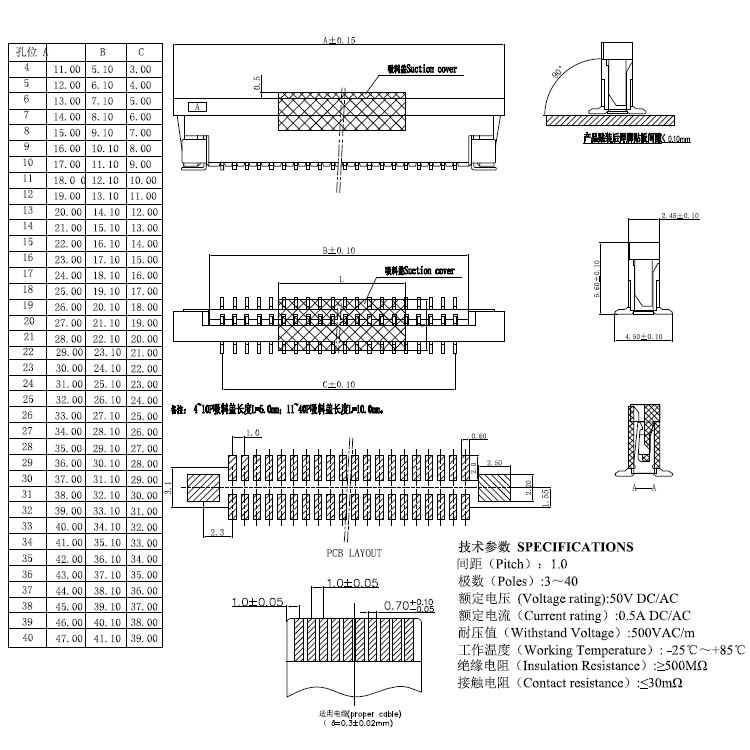 3.絕緣電阻:500MΩ Min 4.耐壓值 :500V