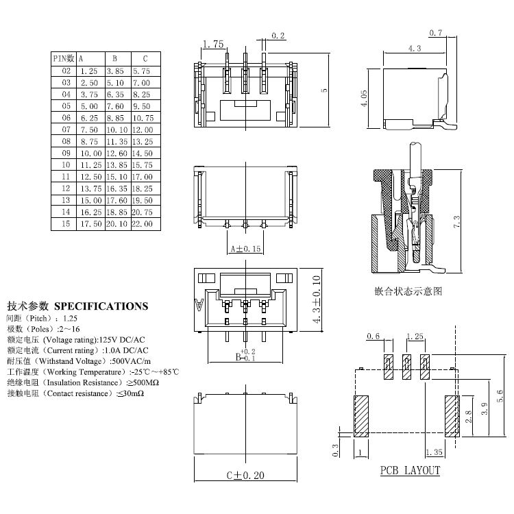 間距1.25-1×nP單排立貼內(nèi)扣針座加蓋