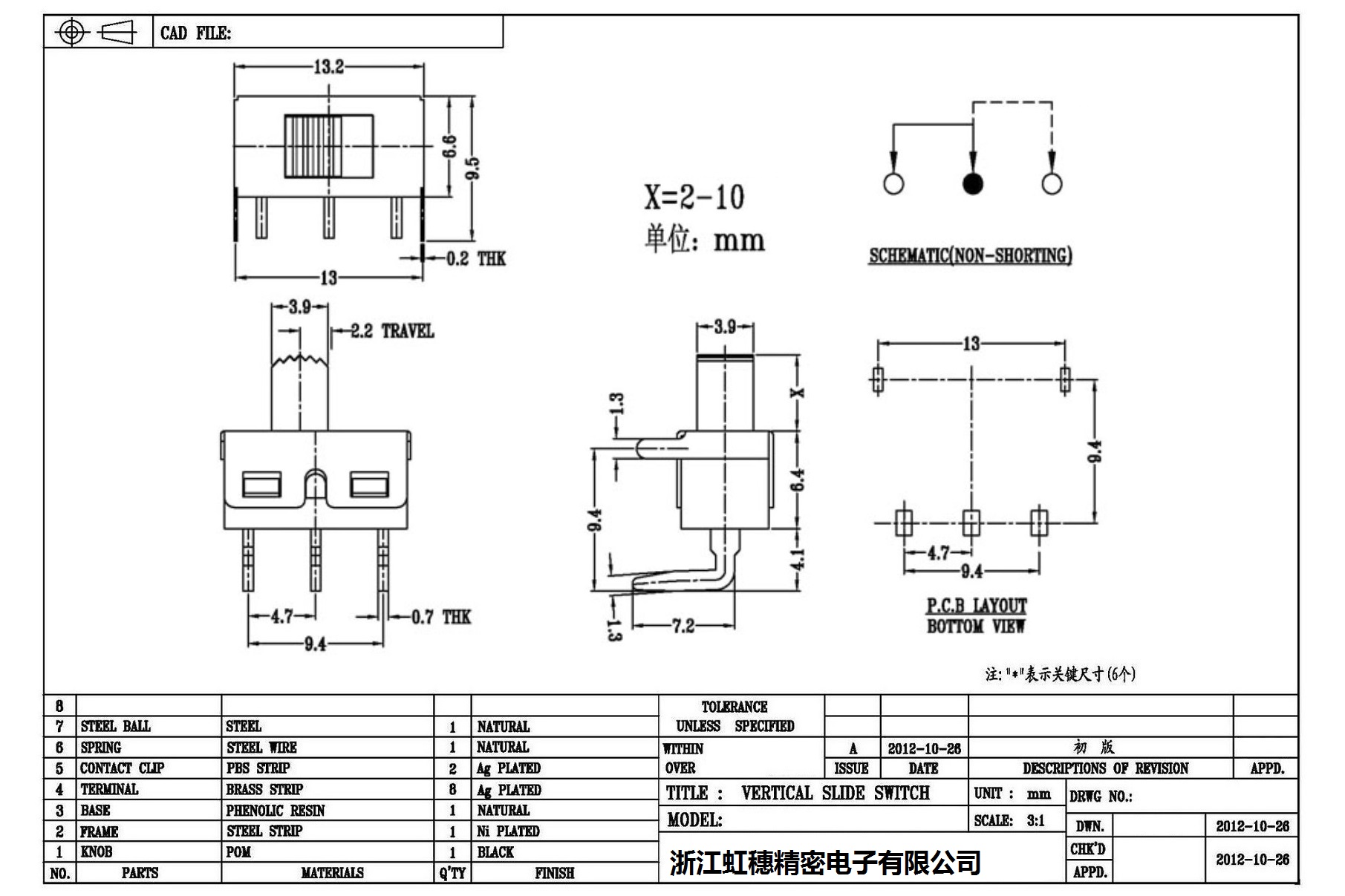 大電流撥動開關(guān)技術(shù)參數(shù):