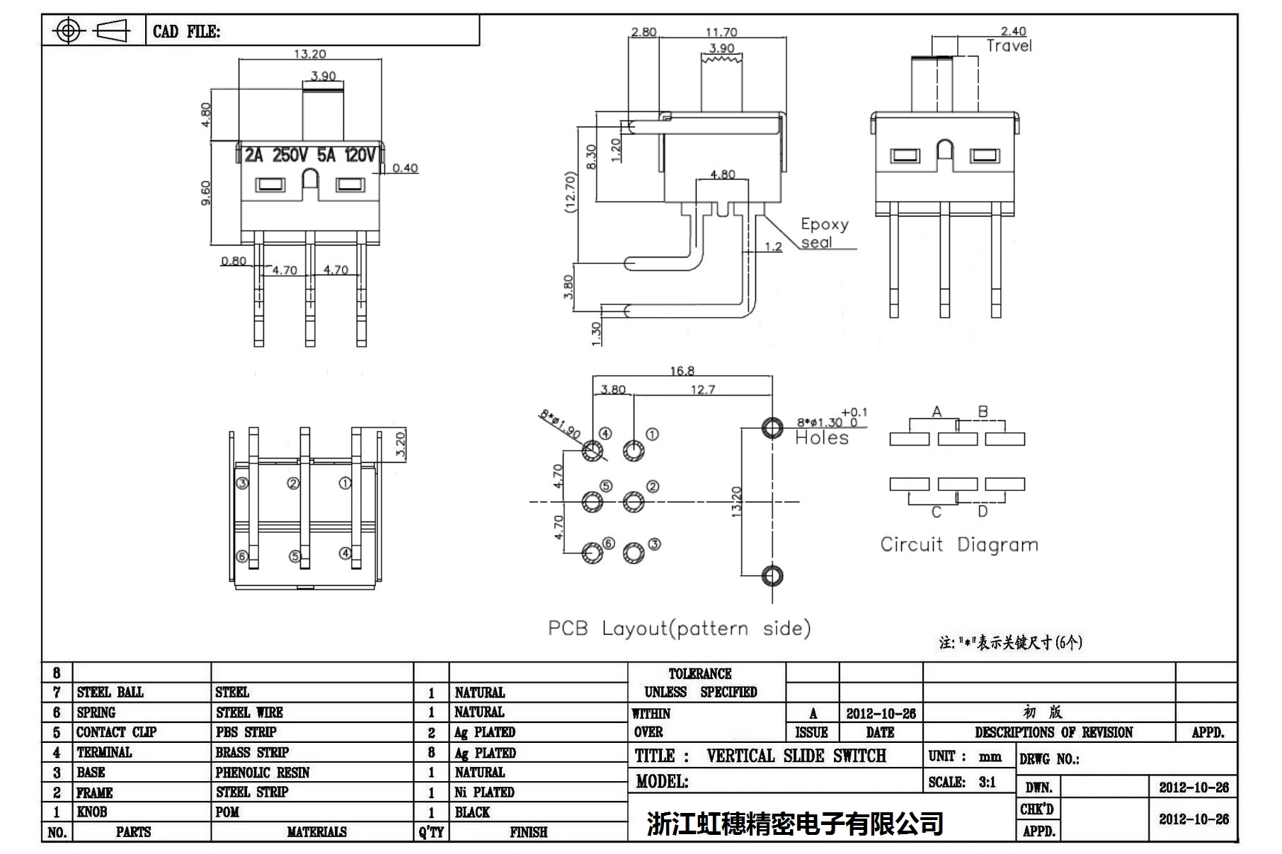 大功率撥動開關技術指標