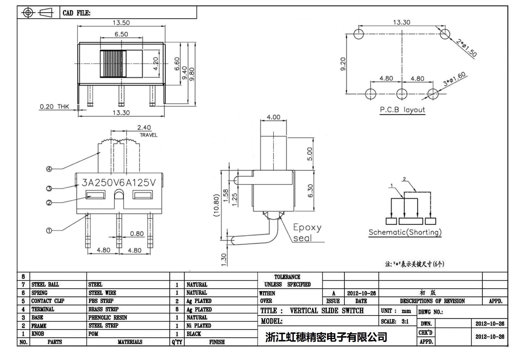 Technicalindicators of high-power Toggle switch/high-current Slide switch