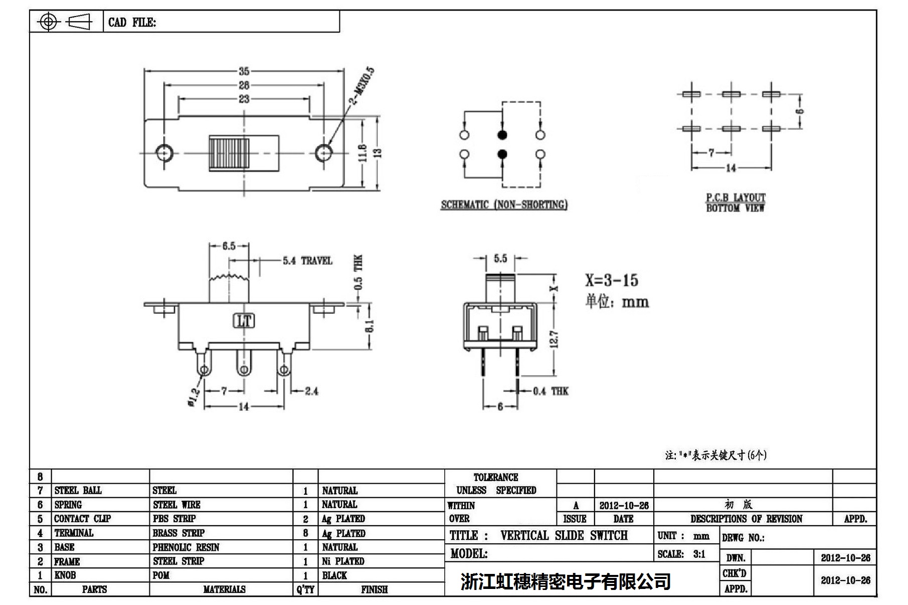 大功率撥動開關技術指標