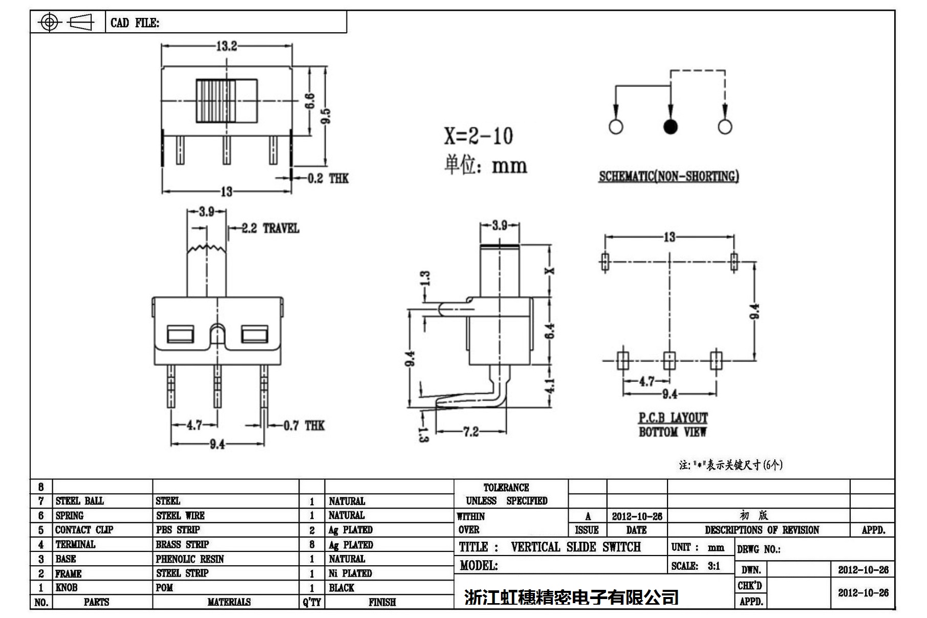 大功率撥動開關(guān)技術(shù)指標