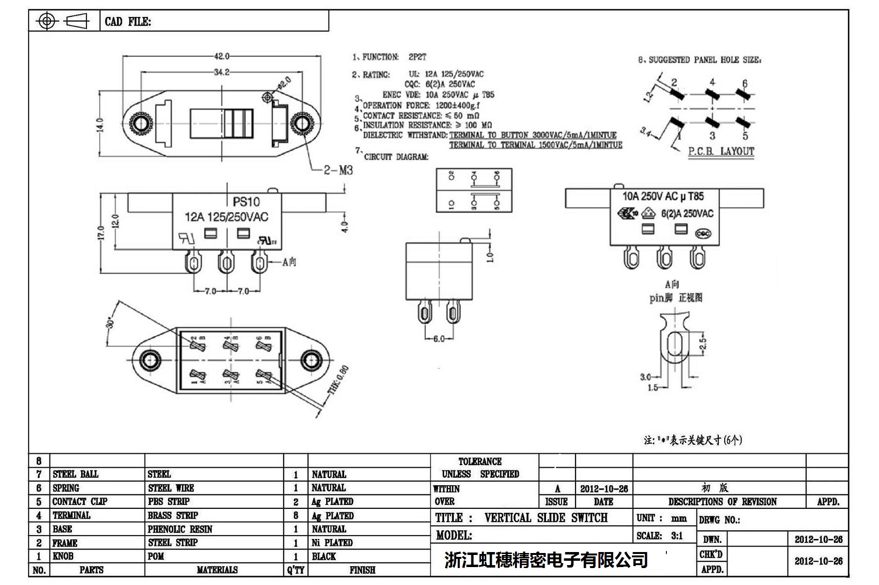 3、操作力1200士400g.f4、接觸電阻:≤50mn5、絕緣電阻≥100 Ma