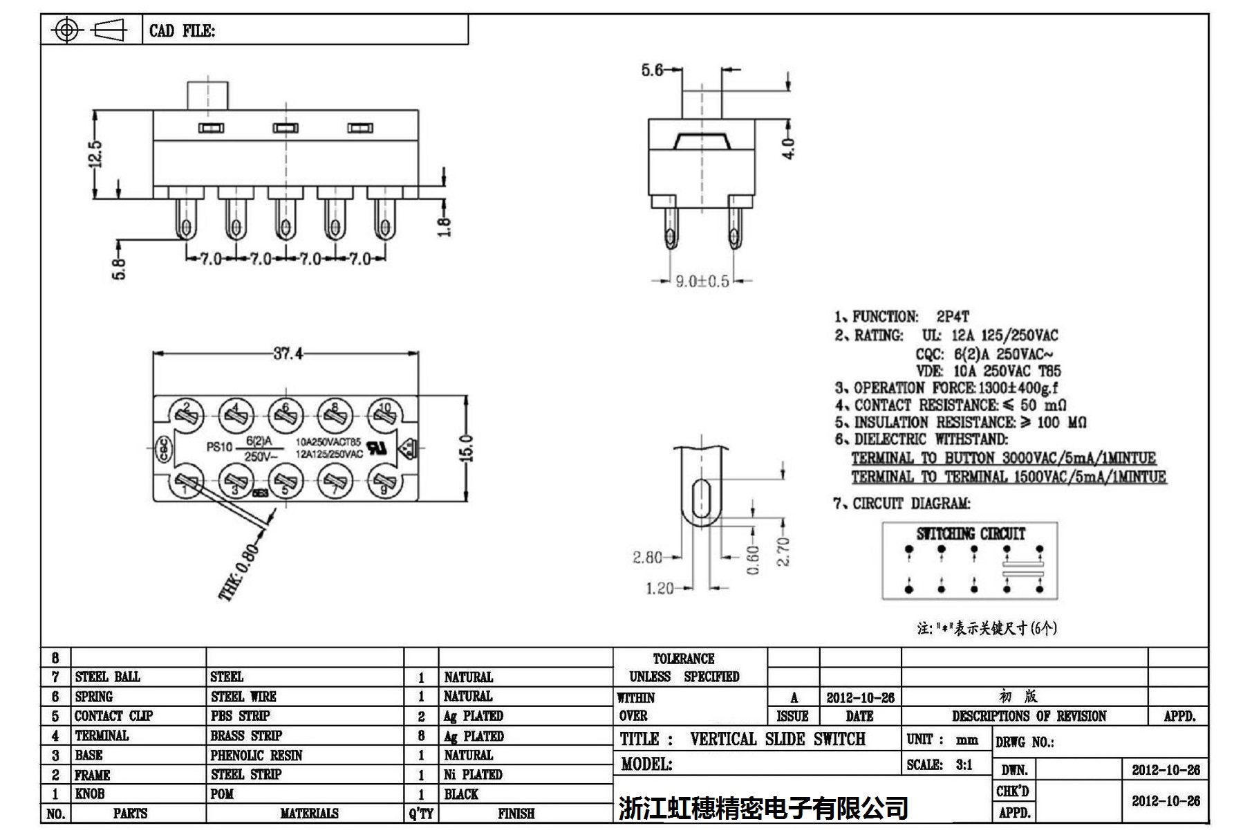 3、操作力1200士400g.f4、接觸電阻:≤50mn5、絕緣電阻≥100 Ma