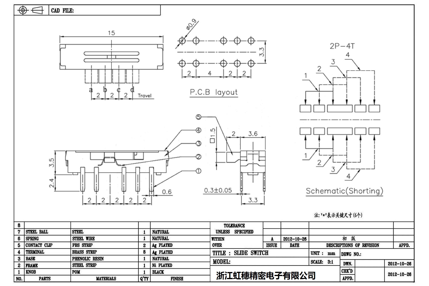 迷你撥動開關側撥 技術參數: