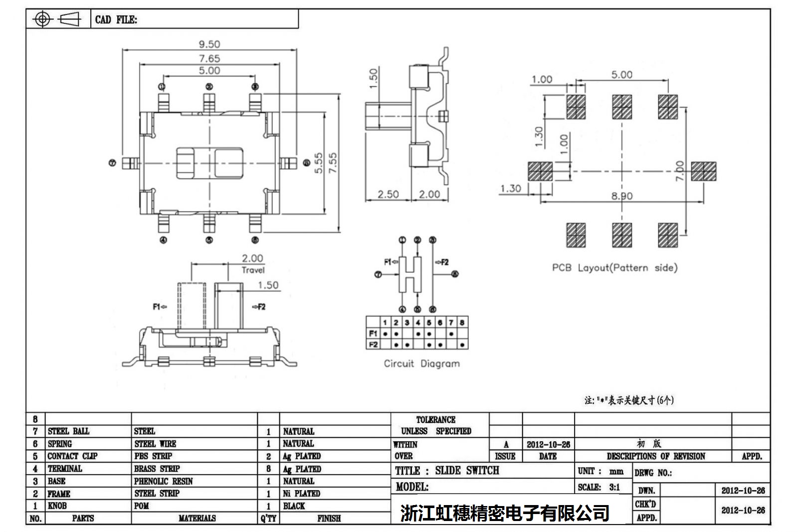 Technical parameters of mini slide switch:
