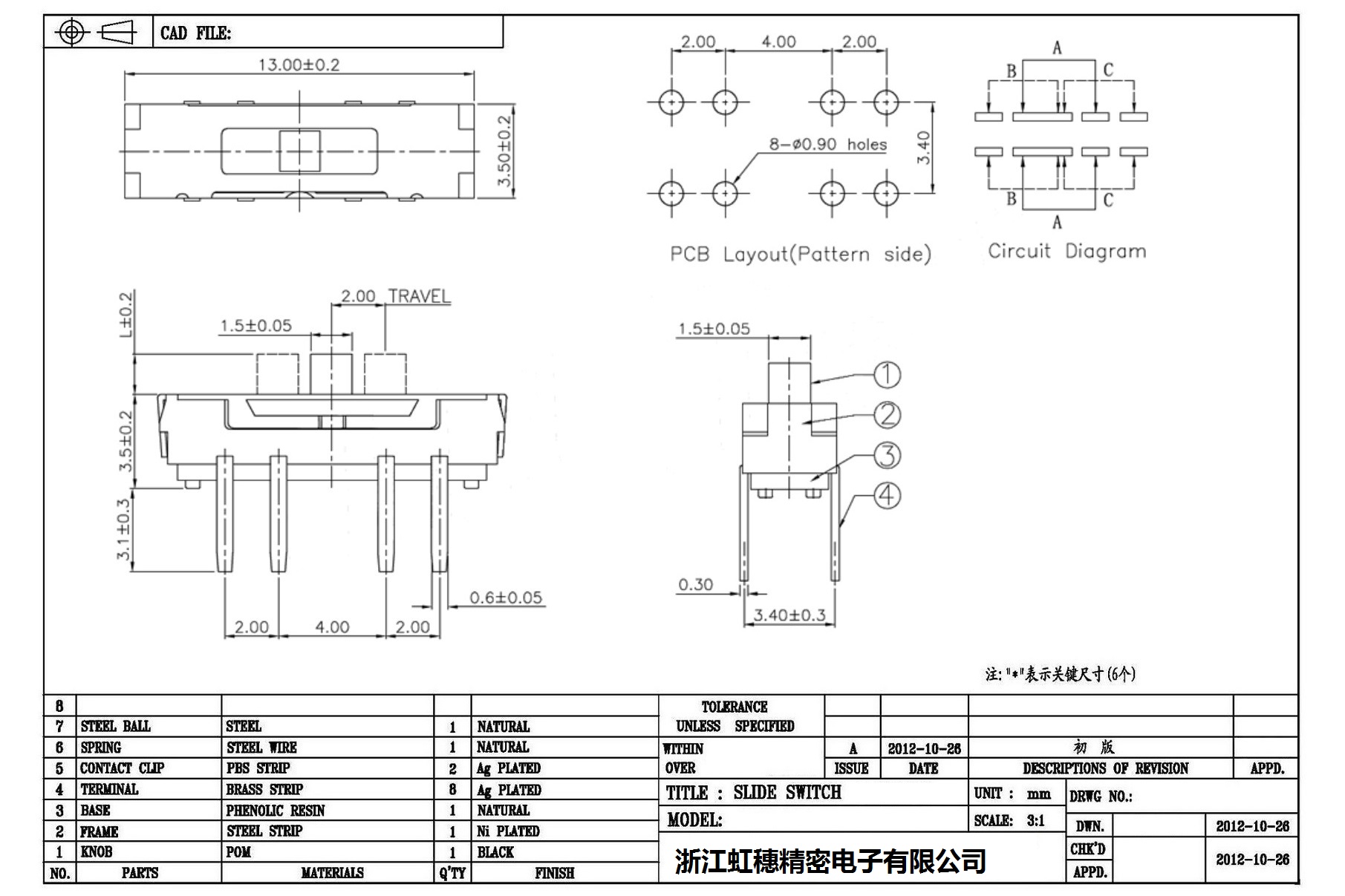 Technical parameters of mini slide switch: