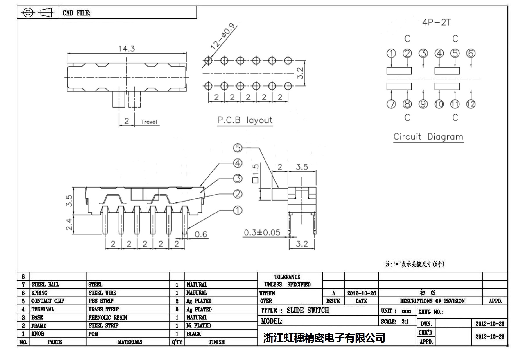 迷你撥動開關(guān)側(cè)撥 技術(shù)參數(shù):