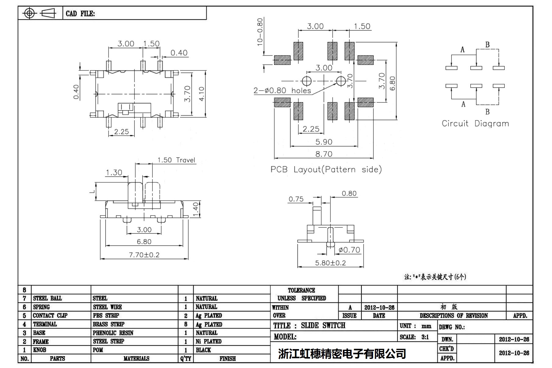 迷你撥動(dòng)開(kāi)關(guān)側(cè)撥 技術(shù)參數(shù):