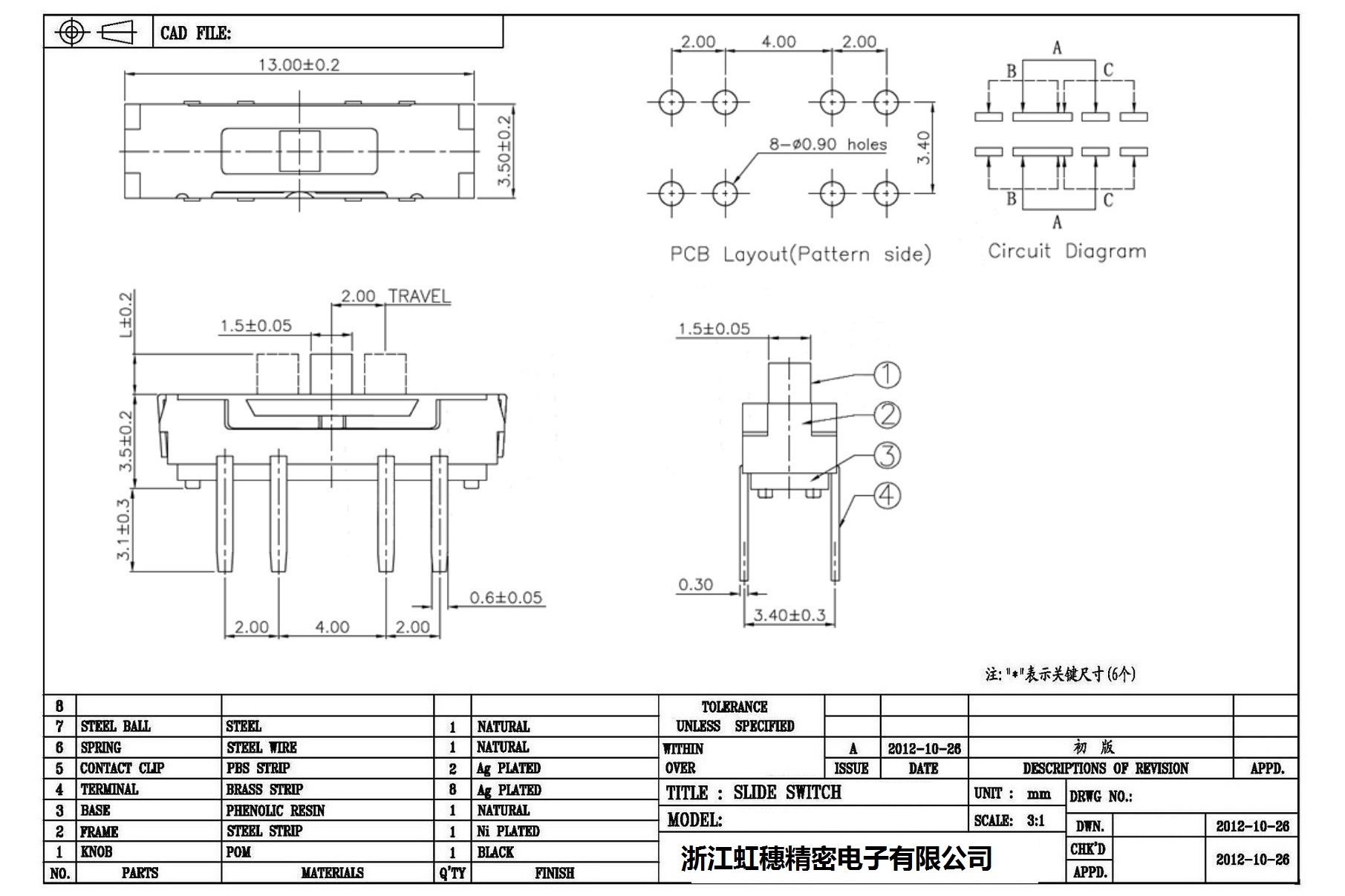 Minislide switch technical indicators / micro slide switch technical indicators