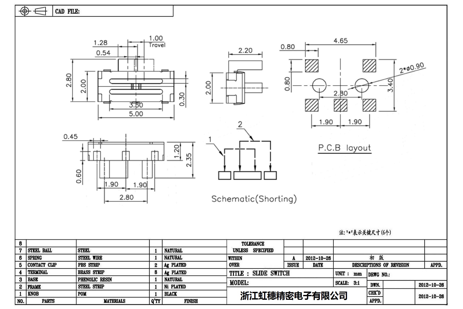 迷你型撥動(dòng)開關(guān)技術(shù)指標(biāo)