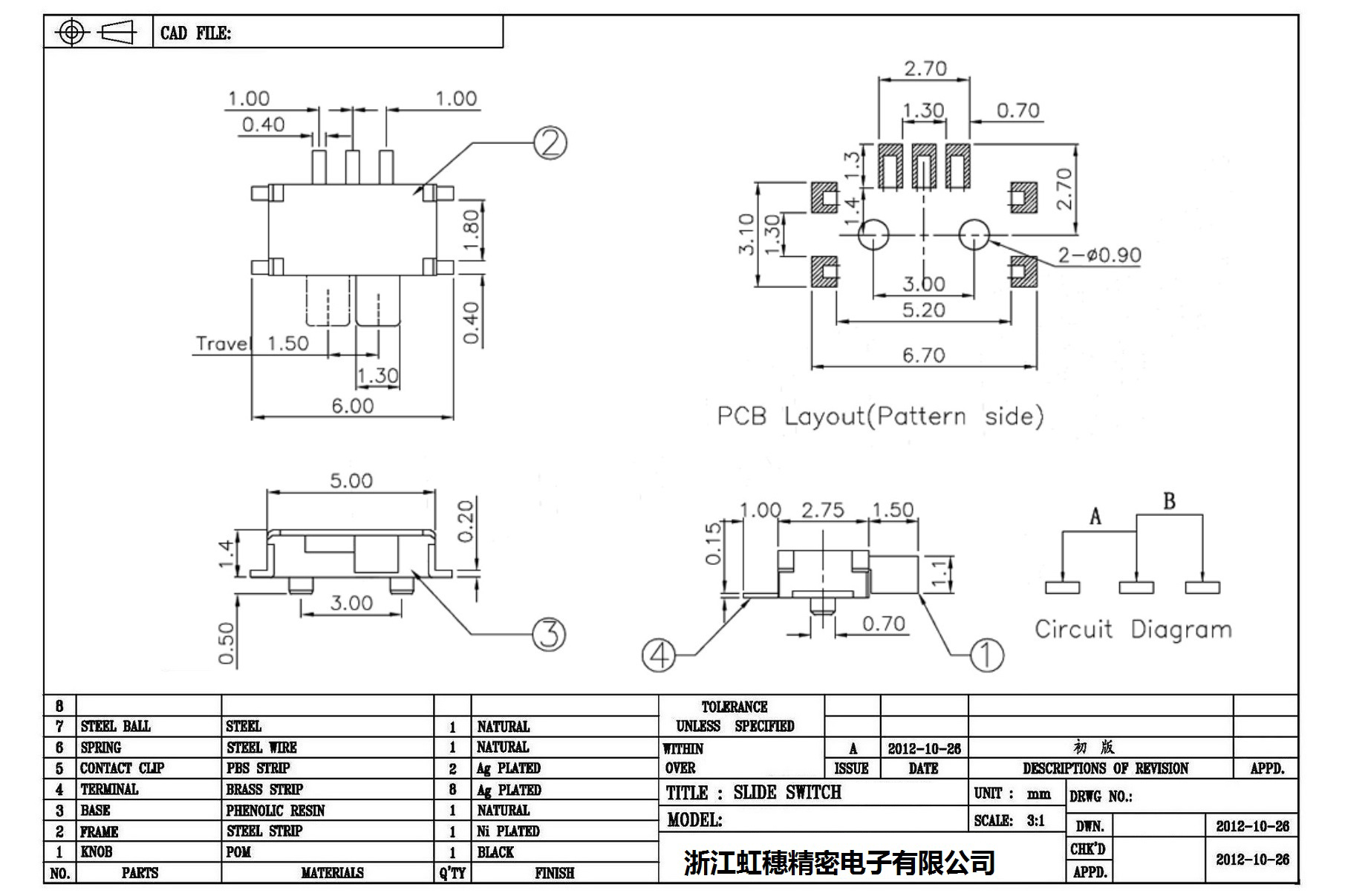 Minislide switch technical indicators / micro slide switch technical indicators