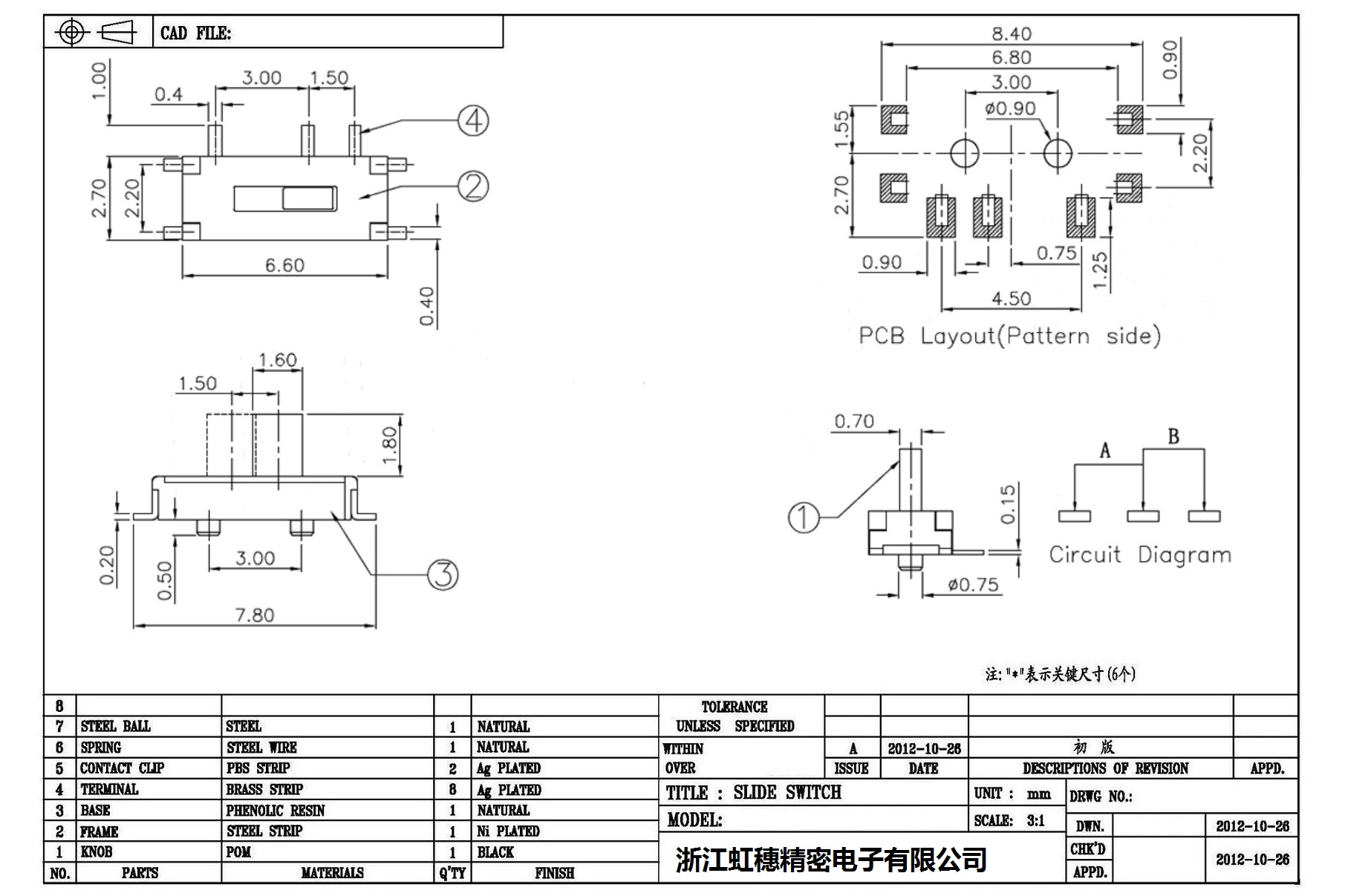 迷你型撥動開關(guān)技術(shù)指標