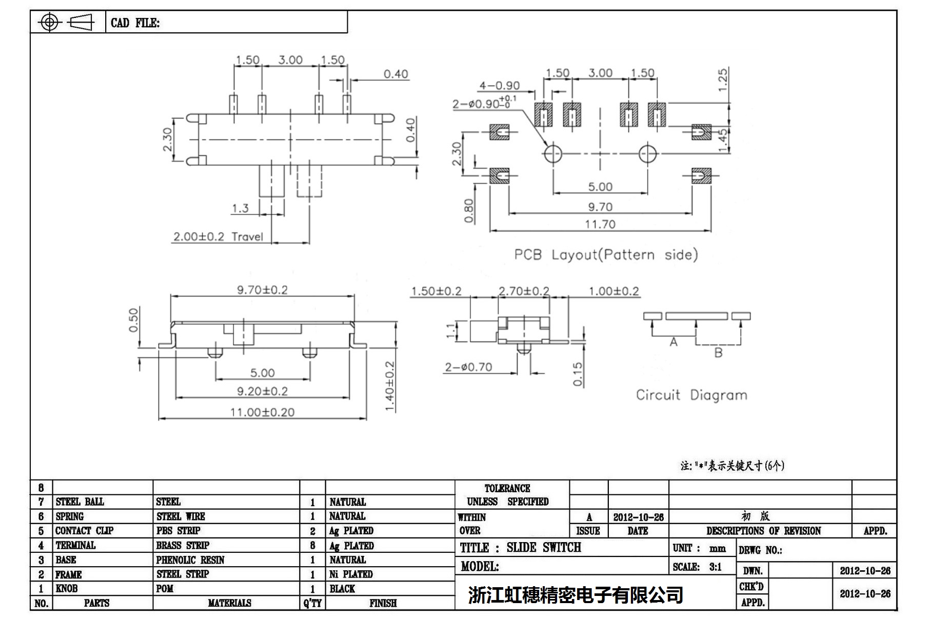 Minislide switch technical indicators / micro slide switch technical indicators
