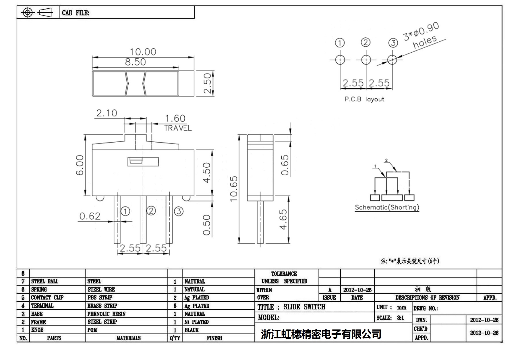 Minislide switch technical indicators / micro slide switch technical indicators