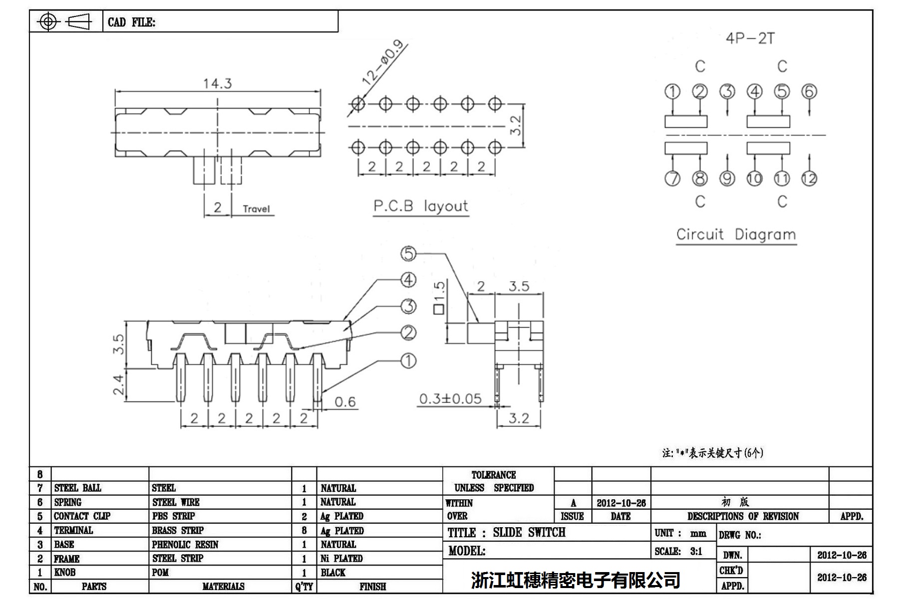 Minislide switch technical indicators / micro slide switch technical indicators