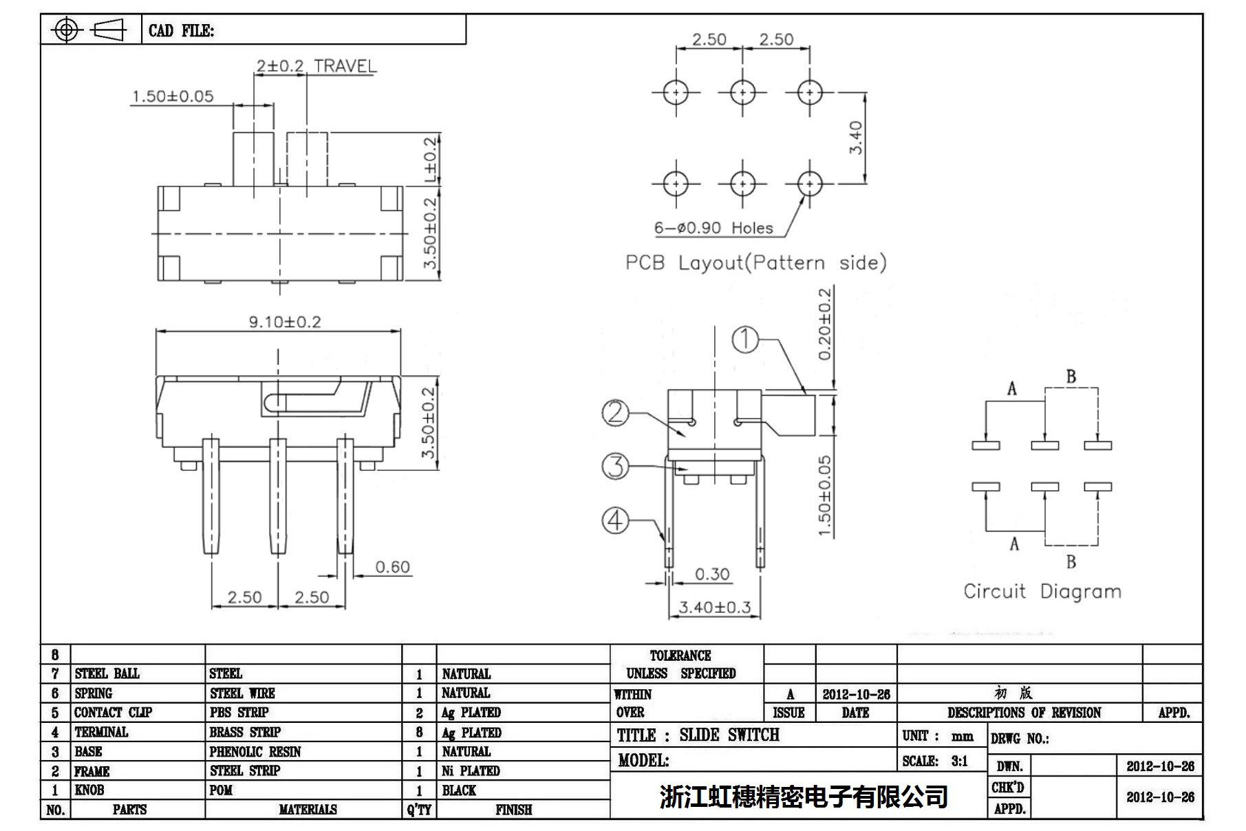 Minislide switch technical indicators / micro slide switch technical indicators