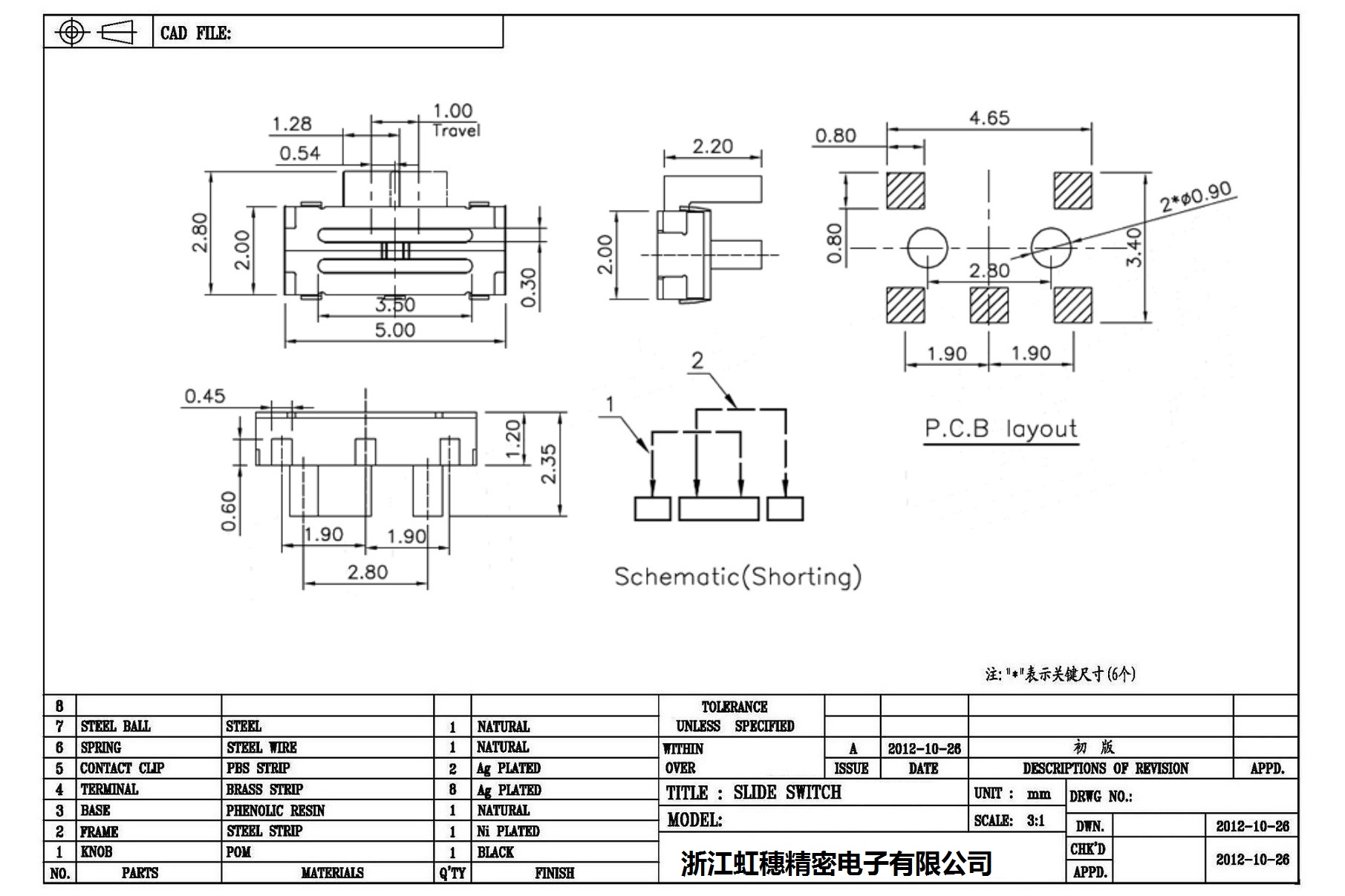 迷你型撥動開關(guān)技術(shù)指標(biāo)