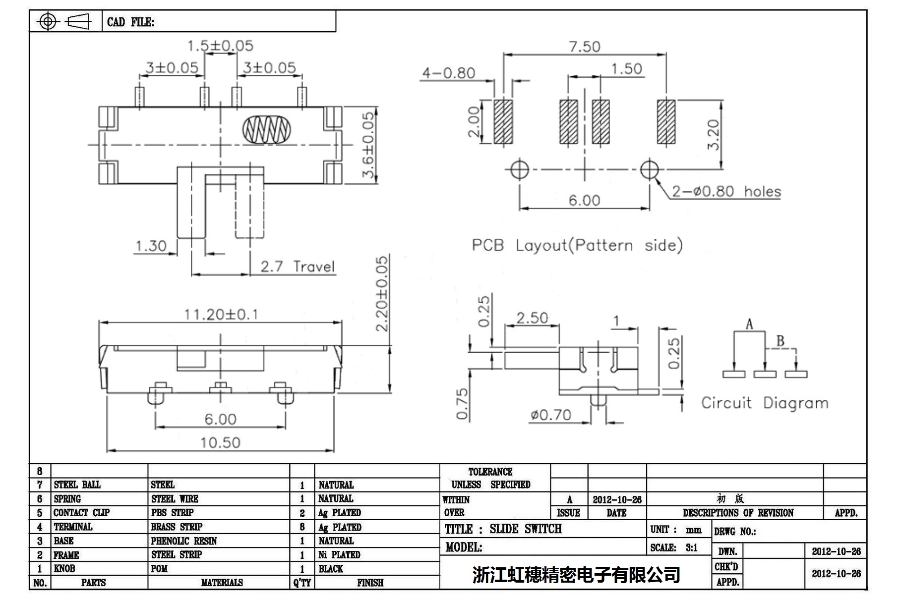 Minislide switch technical indicators / micro slide switch technical indicators