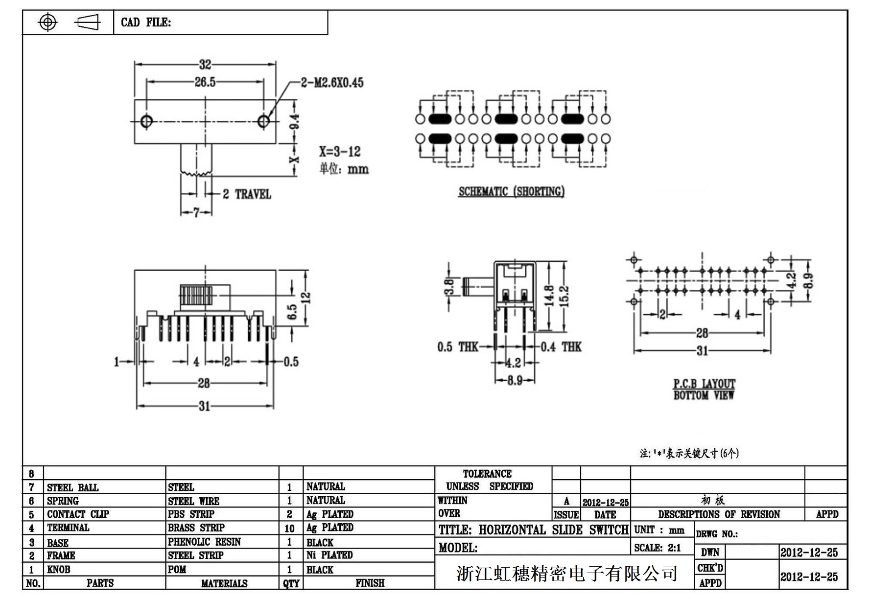 Horizontal toggle switch sidedial/horizontal slide switch technical indicators