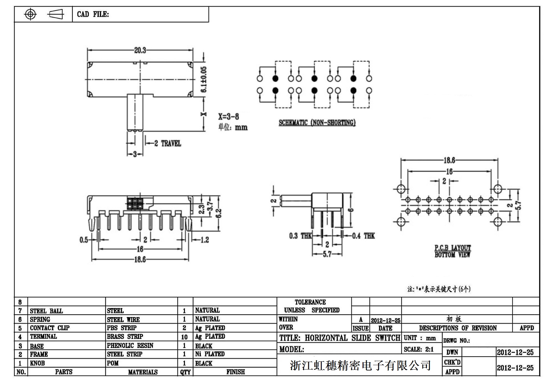 Horizontal toggle switch sidedial/horizontal slide switch technical indicators