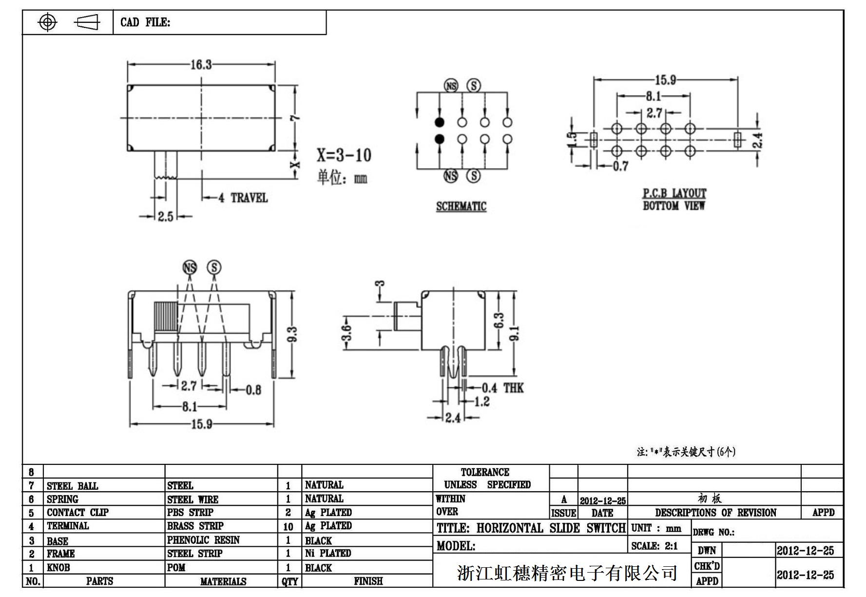 Horizontal toggle switch sidedial/horizontal slide switch technical indicators