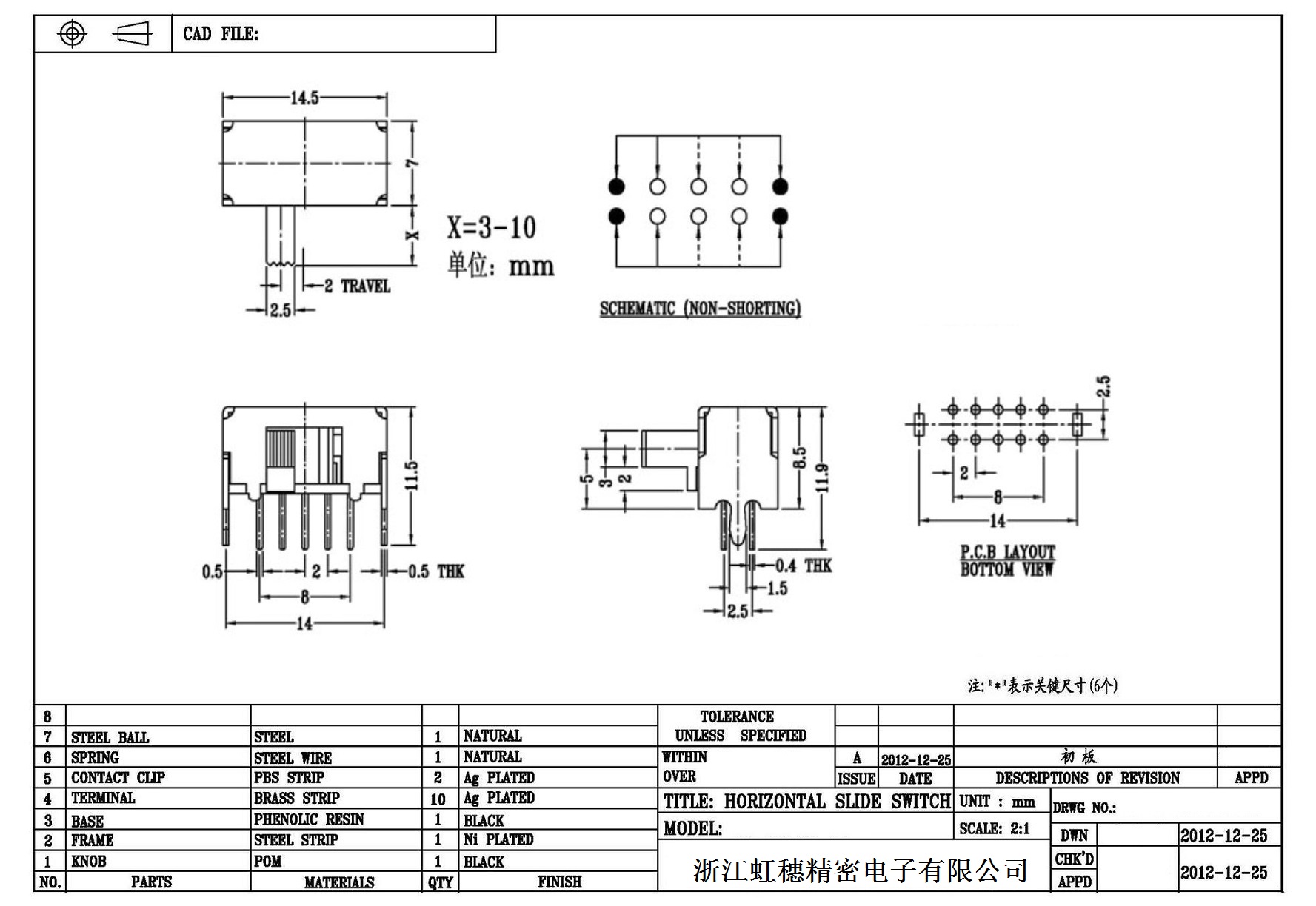Horizontal toggle switch sidedial/horizontal slide switch technical indicators