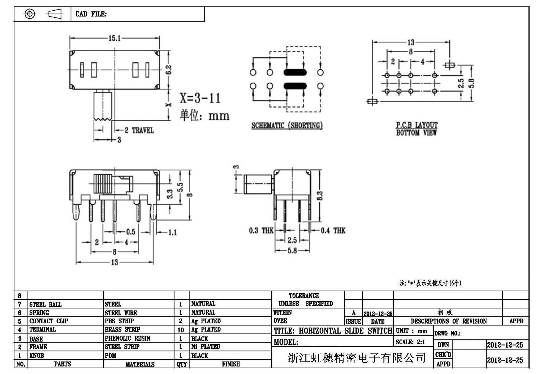 Horizontal toggle switch sidedial/horizontal slide switch technical indicators
