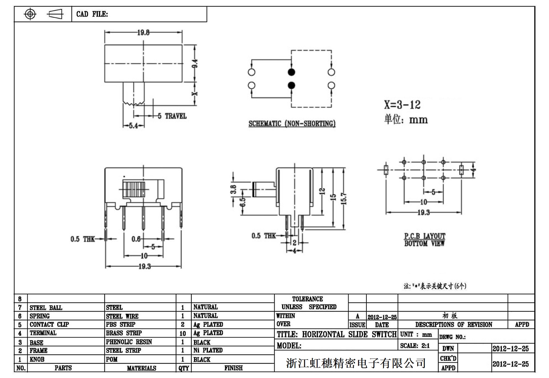 Horizontal toggle switch sidedial/horizontal slide switch technical indicators