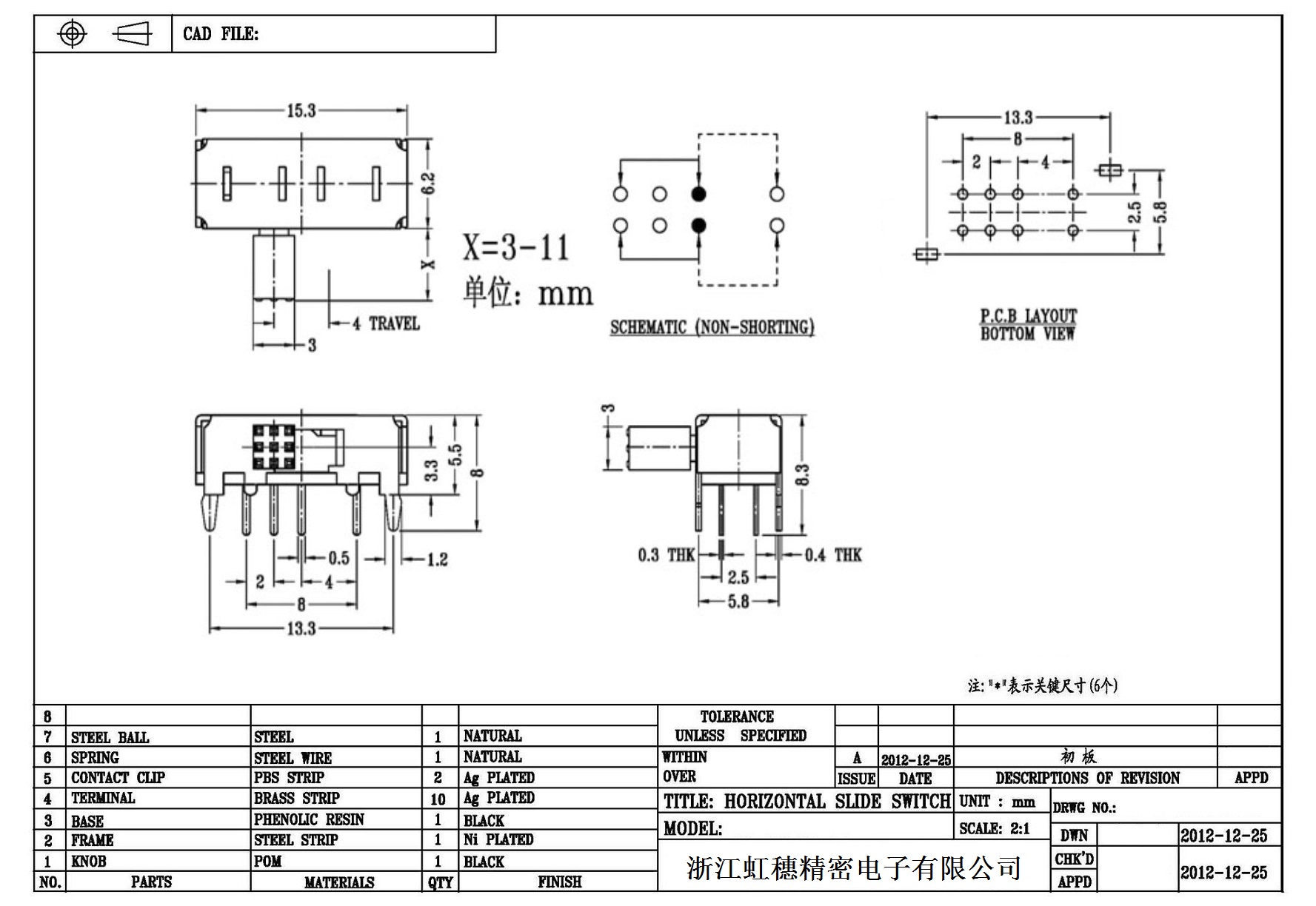 Horizontal toggle switch sidedial/horizontal slide switch technical indicators
