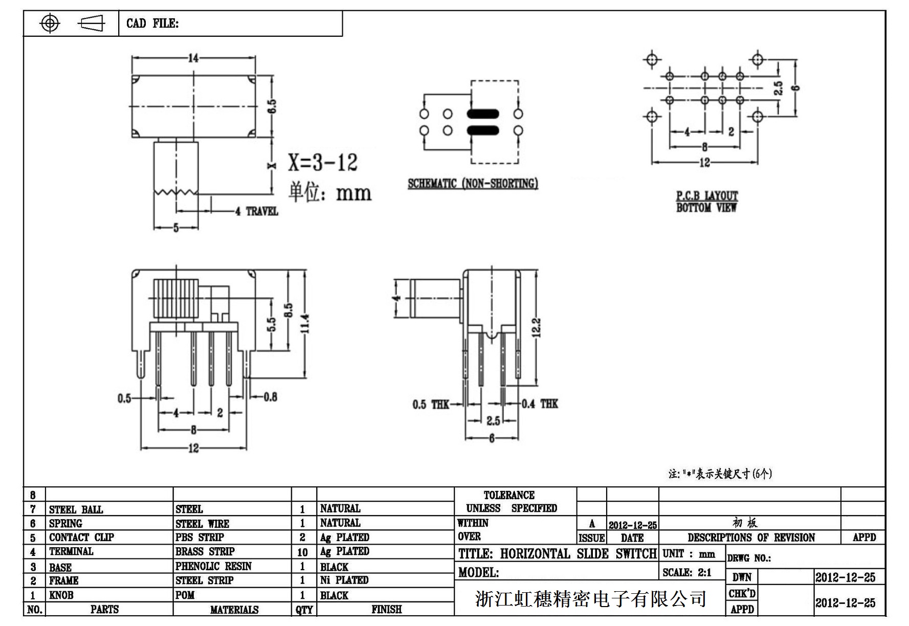 Horizontal toggle switch sidedial/horizontal slide switch technical indicators