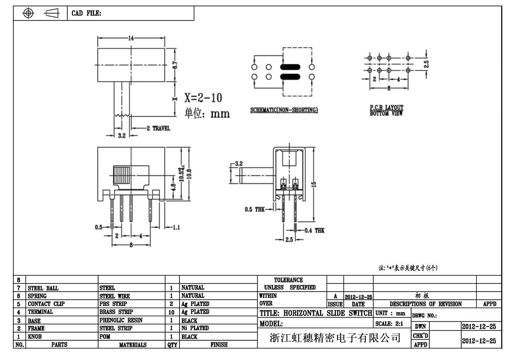 Horizontal toggle switch sidedial/horizontal slide switch technical indicators