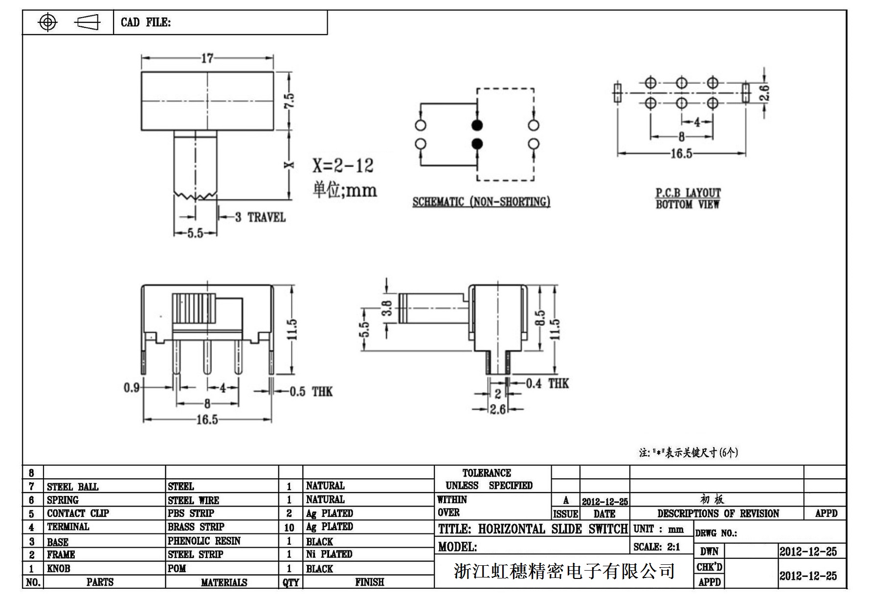 Horizontal toggle switch sidedial/horizontal slide switch technical indicators